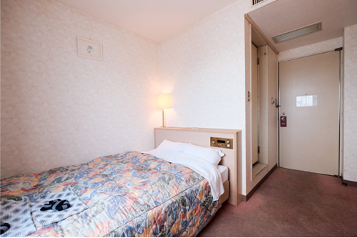 シングル客室のベッドはワイドなセミダブルサイズをご提供。ゆったりとしたベッドで心地よい睡眠を。